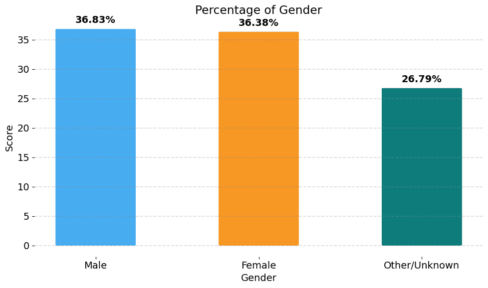 Gender: The graph illustrates the gender distribution of users who participated in the evaluation. We observe a very even distribution between men and women. However, we also observe a large portion that answered another category or did not provide an answer.