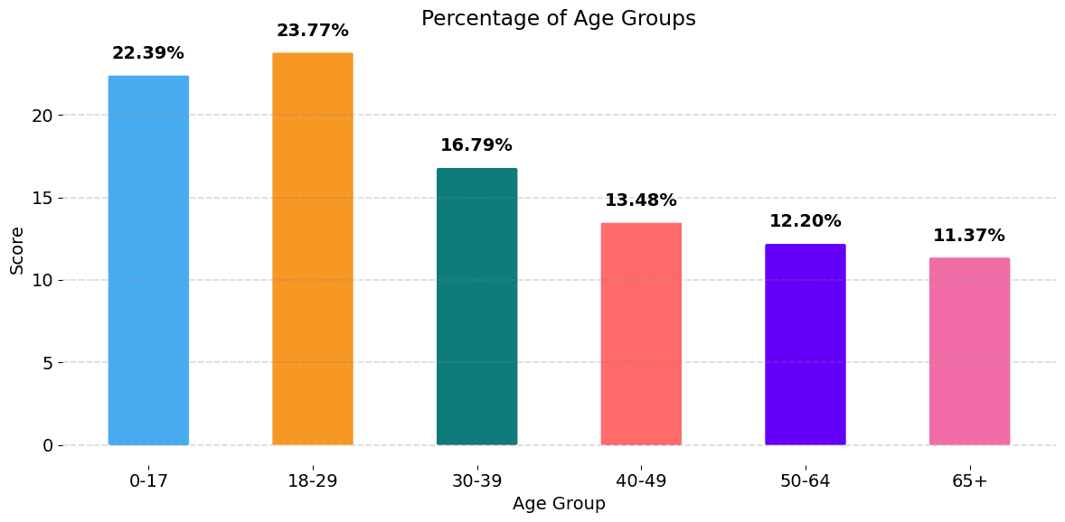 With our proposed benchmark and annotation framework, we aim to improve global representation to reduce biases. We therefore present and analyze demographic data of the participating annotators. We present three statistics; geographic location, age group, and gender.