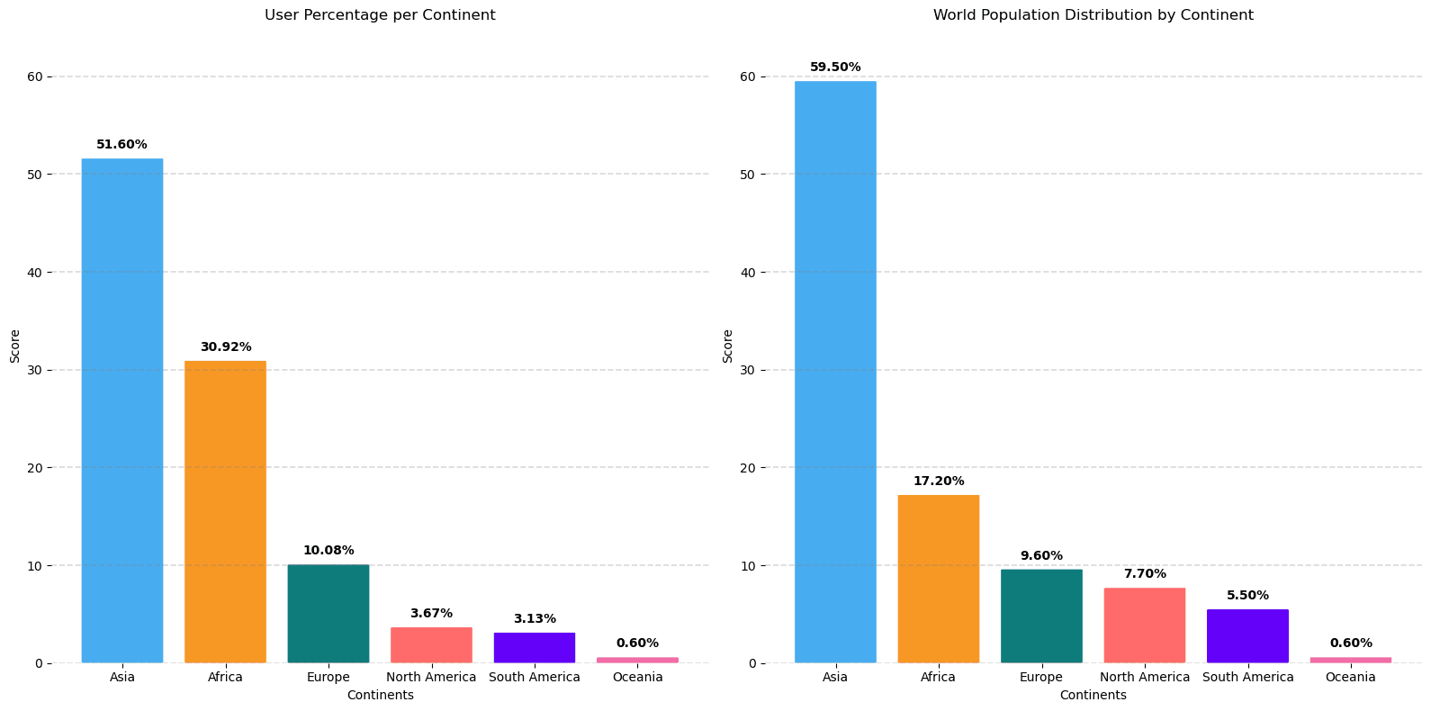Location: For simplicity and visualization, we break down location by continent. In the figure below we see that our distribution captures the trend of the global population, with a slight overrepresentation of Africa and Europe, and a slight underrepresentation of Asia and North America. The underrepresentation of North America may be offset by the cultural similarity to Europe. The distribution is overall a reasonable estimate of the world population, and underlines the argument that our proposed framework reaches a diverse set of annotators to reduce biases. For future work, we can adjust this, as our tool allows us to target specific countries or even languages.