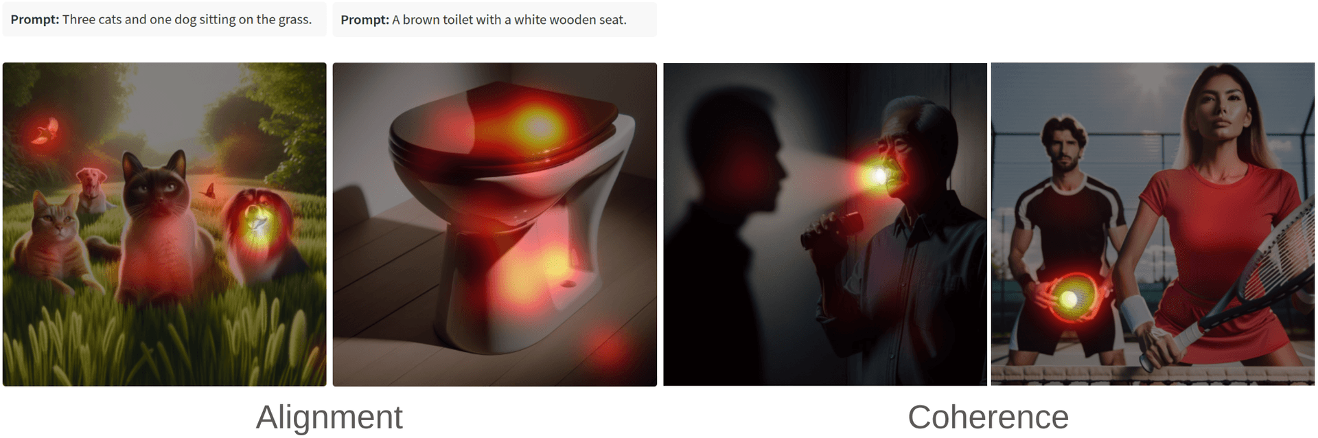 - Image Area Selection For images rated poorly on coherence or alignment, annotators pinpoint specific problem areas in the image. Each annotator can select up to three distinct points in an image.